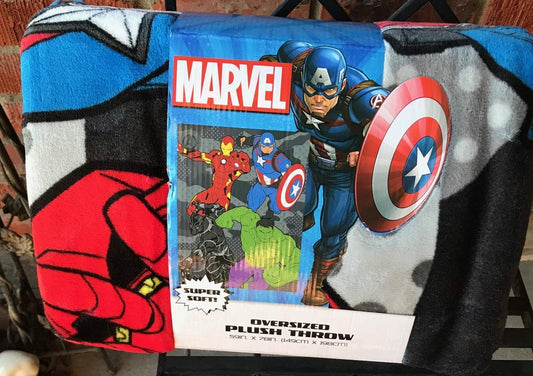 Marvel Avengers Captain America Hulk Black Panther Iron Man Oversized Plush Throw 59 x 78 inches